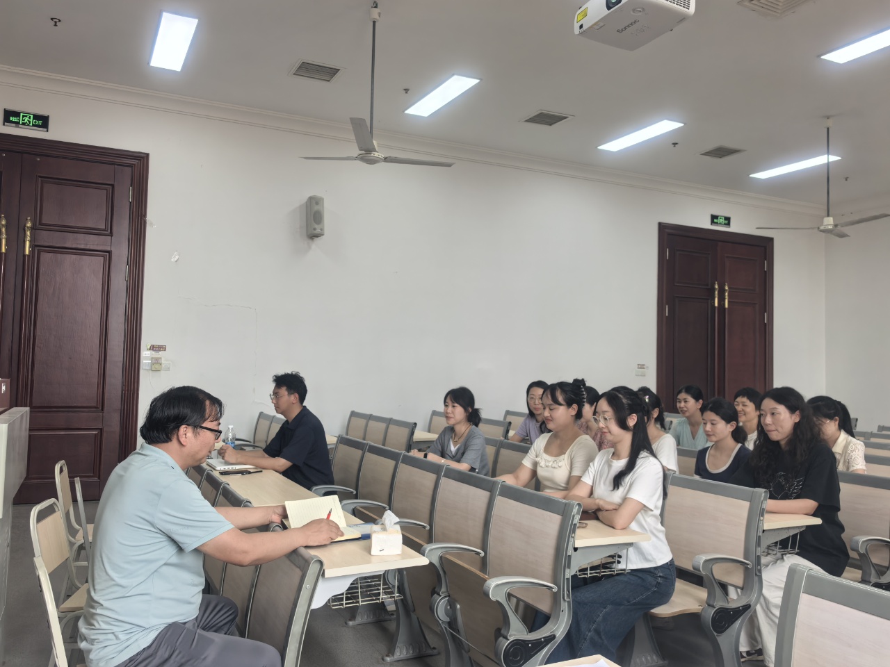 最后,陈开江老师着重强调了师德师风建设的重要性。他表示,教师是学生的引路人,全体教师要始终坚守师德底线,做到为人师表、教书育人。同时,每位教师要不断提高个人能力和学术能力,深入钻研习近平新时代中国特色社会主义思想,以扎实的理论功底和丰富的教学经验,为学生呈现高质量的课堂教学。