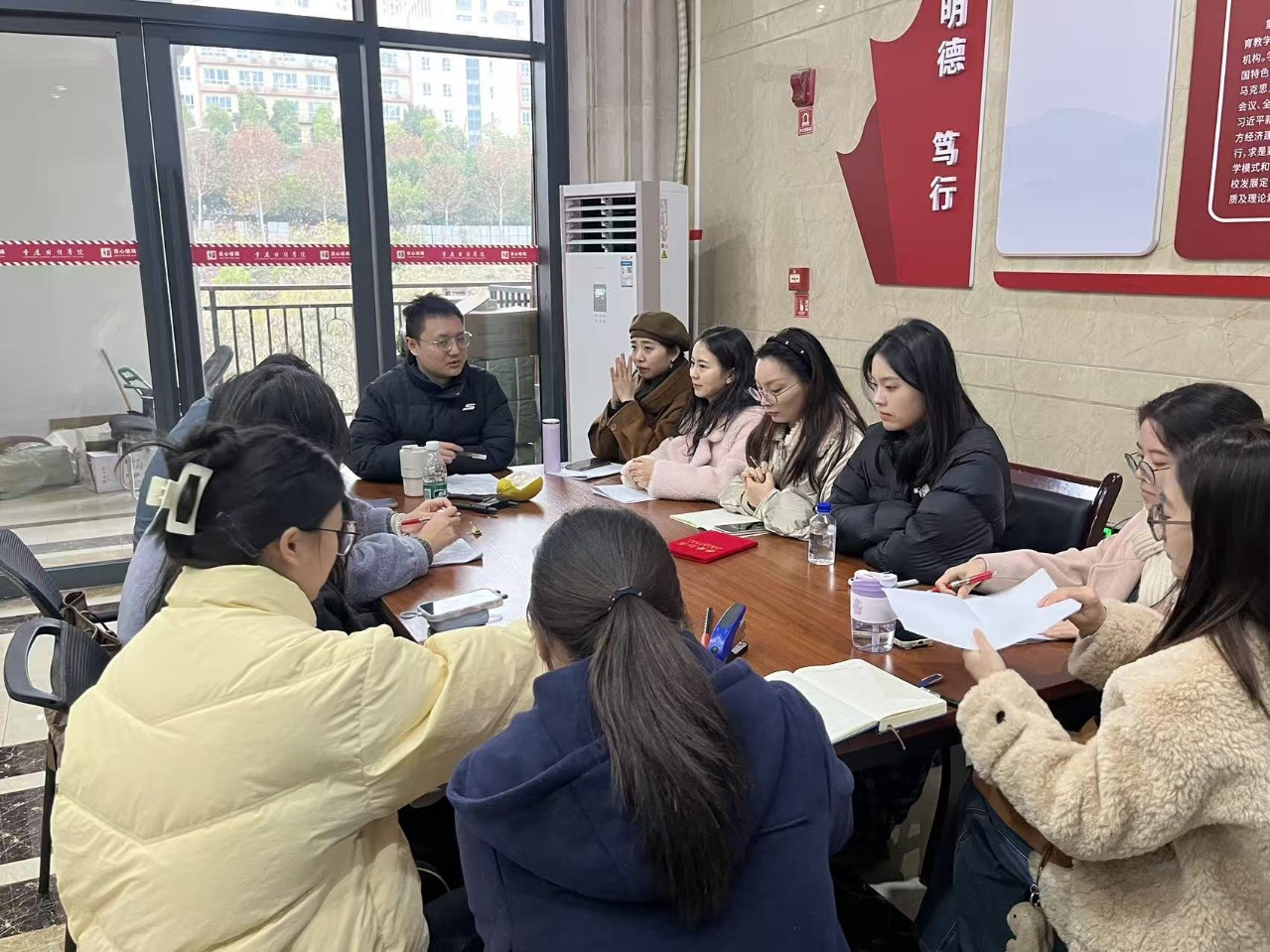 12 月 22 日下午,马克思主义学院思想道德与法治教研室 2025-2026 学年第一学期期末总结工作例会于学院办公室召开。会议围绕 “大思政课” 活动总结、新进教师督导听课反馈、德法实践教学收尾、期末考试安排及下学期纲要课程排课等核心议题,进行了全面部署与深入研讨,聚焦教学合格评估攻坚战的关键任务。教研室主任周敏主持会议并部署相关工作,教研室全体教师参会。
