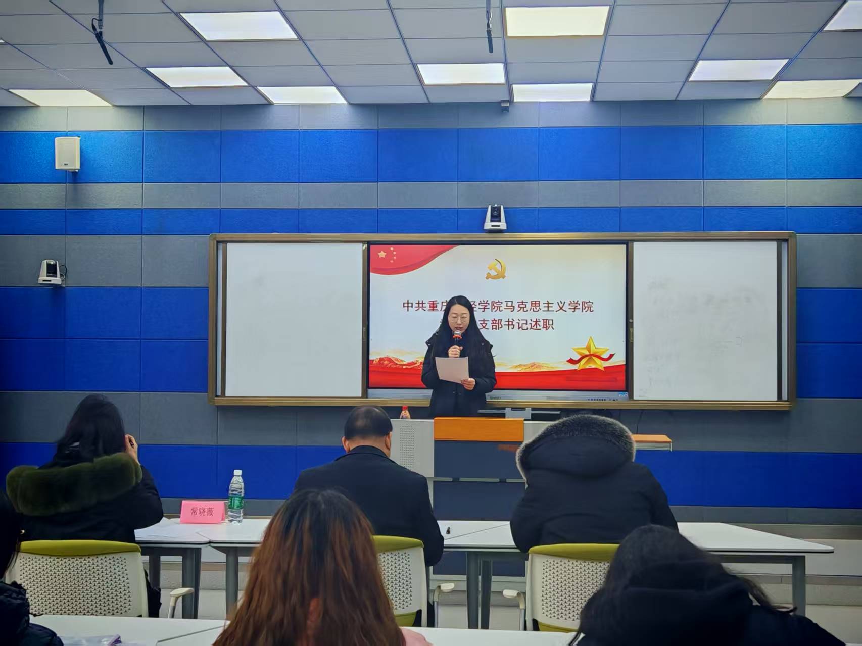 1月22日上午,马克思主义学院教工党支部在教学楼1220智慧教室召开2025年度抓基层党建工作述职评议会。校党委书记兼马克思主义学院党总支书记张毅出席并讲话,学院党总支副书记崔文卿到会点评,院长常晓薇主持会议,教工党支部全体党员参会。