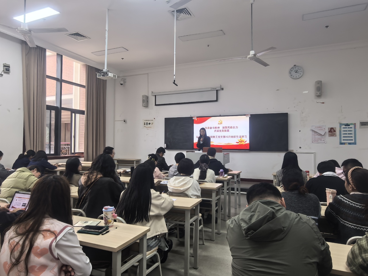 会上高雪莲老师领学了《中共中央政治局召开会议,讨论拟提请二十届四中全会审议的文件》,邹欢老师领学了习近平总书记重要文章《中华民族共同体的形成和发展是人心所向,大势所趋,历史必然》,王茂诗老师领学了《中华人民共和国成立76周年招待会》上的重要讲话。三位老师分享了学习心得,深化了参会党员的的认知,今后会以之指引行动,收获满满。