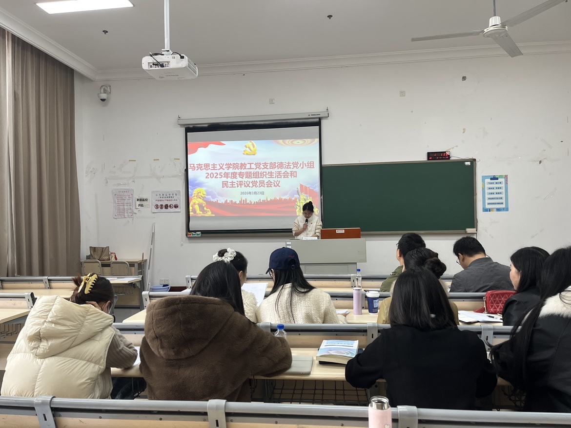 为深入学习贯彻习近平新时代中国特色社会主义思想,全面贯彻落实党的二十届四中全会精神,锲而不舍落实中央八项规定精神,抓好中央巡视反馈意见整改落实,2026年3月23日,马克思主义学院教工党支部思想道德与法治教研室党小组在教学楼1520召开2025年度专题组织生活会暨民主评议党员会议。会议由党小组组长吴兴维主持,思想道德与法治党小组全体党员参加会议。