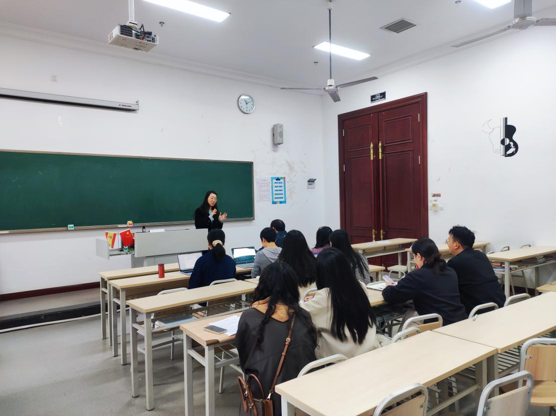 会议最后,李百灵老师为大家分享了重庆市高校思想政治理论课教师教学技能竞赛初赛流程和经验。就流程而言,她指出去年和今年赛课在抽签顺序、倒计时、学生和场地布置的不同,建议大家随机应变,积极适应相应变化。就经验而言,她建议老师们可以准备适当教具以提高学生兴趣。