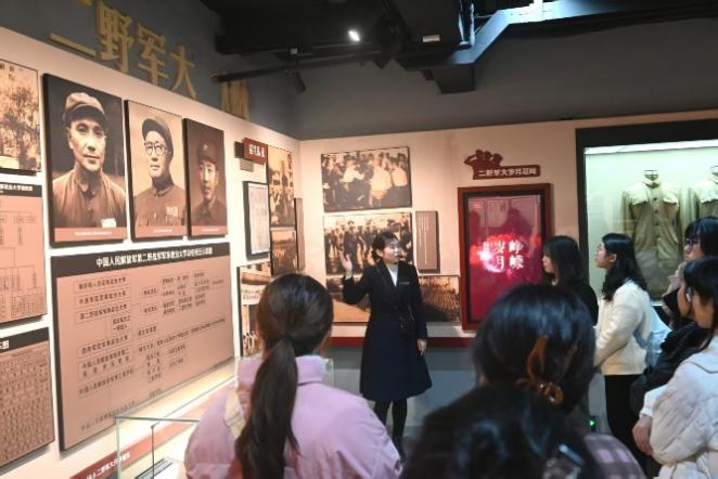 图二 师生在解放重庆历史陈列馆内认真聆听讲解