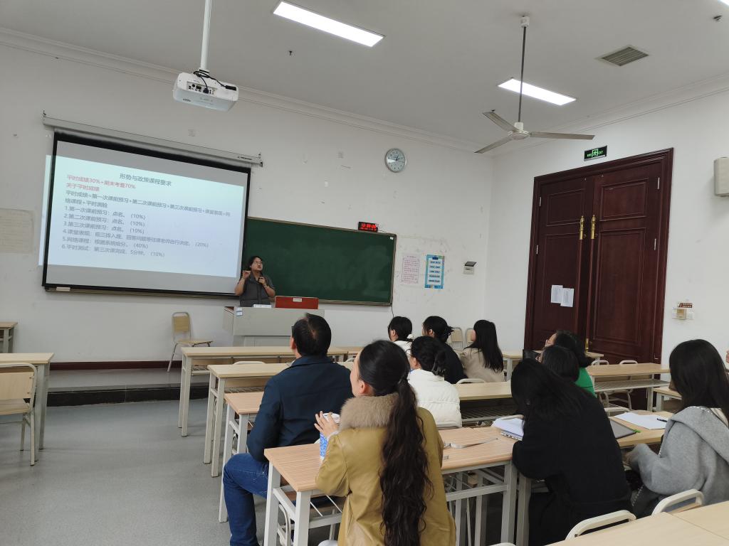 为深入推进2026年春季学期《形势与政策》课程教学工作,持续提升思政课教学质量与育人实效,2026年3月25日下午,马克思主义学院习近平新时代中国特色社会主义思想概论教研室在教学楼1513教室召开了《形势与政策》课程集体备课会。会议由课程负责人苏成容老师主持,《形势与政策》课程组全体任课教师参会研讨。