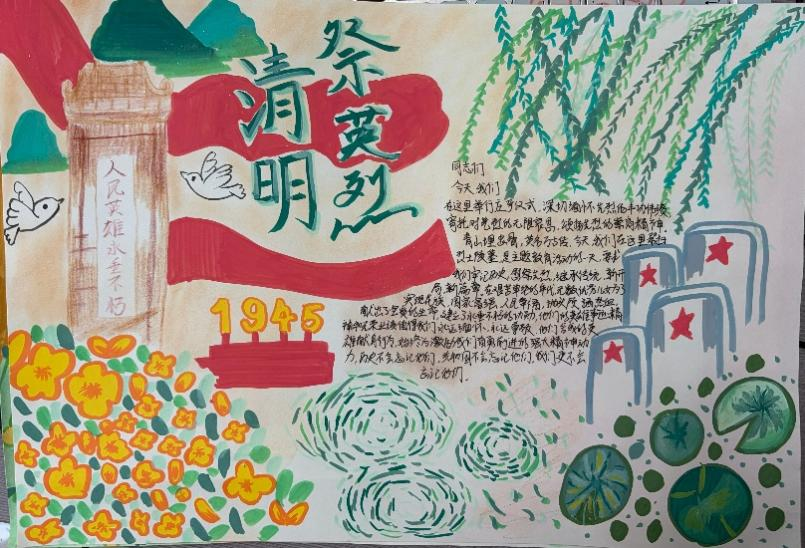 中学学段聚焦“丹心缅先烈,妙笔绘忠魂”,云端拜祭并围绕“清明祭英烈”主题完成海报或手抄报制作,引导学生从英烈坚贞不屈的意志中汲取奋进力量,培育红色基因苗芽。
